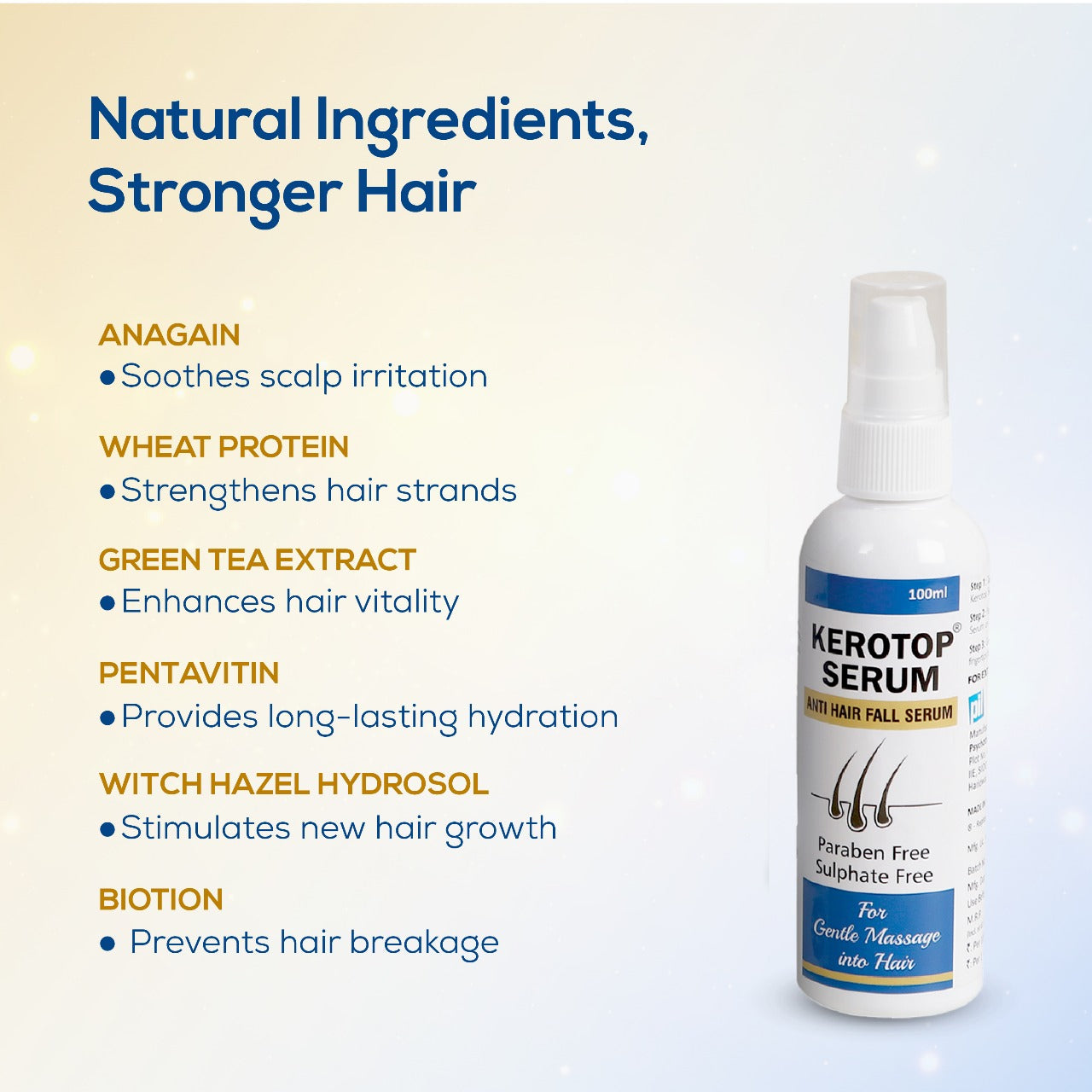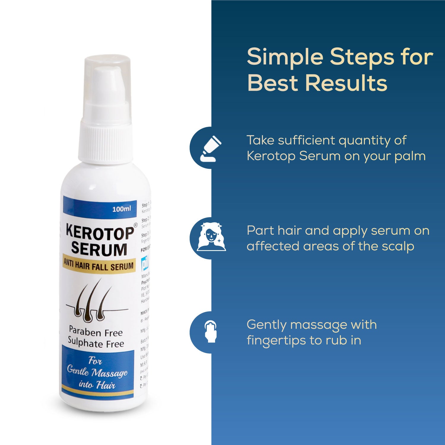 Kerotop Anti Hair Fall Serum doesn't just promise results; it delivers. By strengthening the roots and revitalizing every strand, it helps restore thinning hair, giving you a fuller, more voluminous mane. Its all-natural, paraben-free, and sulphate-free formula provides long-lasting results, boosting your confidence with healthier, more vibrant hair. Easy to apply and fast-absorbing, this serum ensures optimal absorption and convenience, making it an essential part of your daily hair care routine.